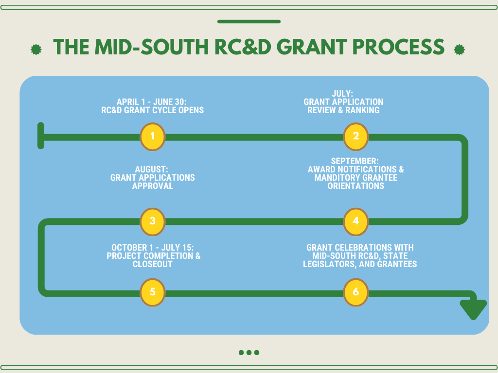 View an approximate timeline of the Mid-South RC&D Grant Process.